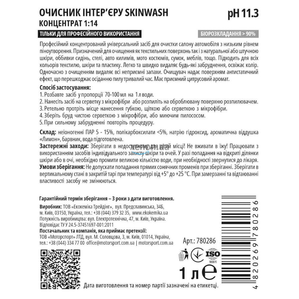 Очиститель салона EKOKEMIKA SkinWash 1:14 (780286) – концентрат 1 л