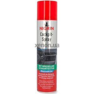 Немецкий  пенный очиститель протектант для пластика с запахом морского бриза NIGRIN Cockpit-Spray Meeresbrise  на 400 мл совместим со всеми типами пластика, винила, хрома. Он легко и безвредно очищает даже глубокие загрязнения, затем оставляет приятный запах и защитный слой от УФ-лучей...