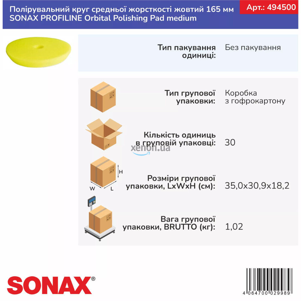 Полировальный круг SONAX PROFILINE Orbital Polishing Pad Medium (494500) – профессиональный инструмент для восстановления ЛКП.