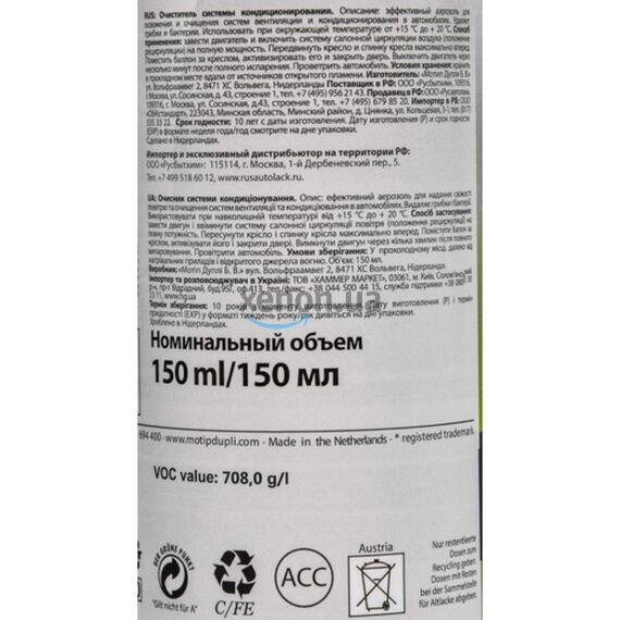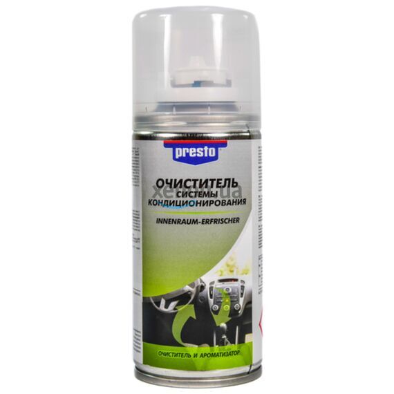Автоматический очиститель кондиционера (лимон) Presto Innenraum-Erfrischer 217838 150 мл - эффективный аэрозоль для освежения и очищения систем вентиляции и кондиционирования в автомобилях. Удаляет грибки и бактерии. Использовать при температуре окружающей среды от +15°С до +20°С.