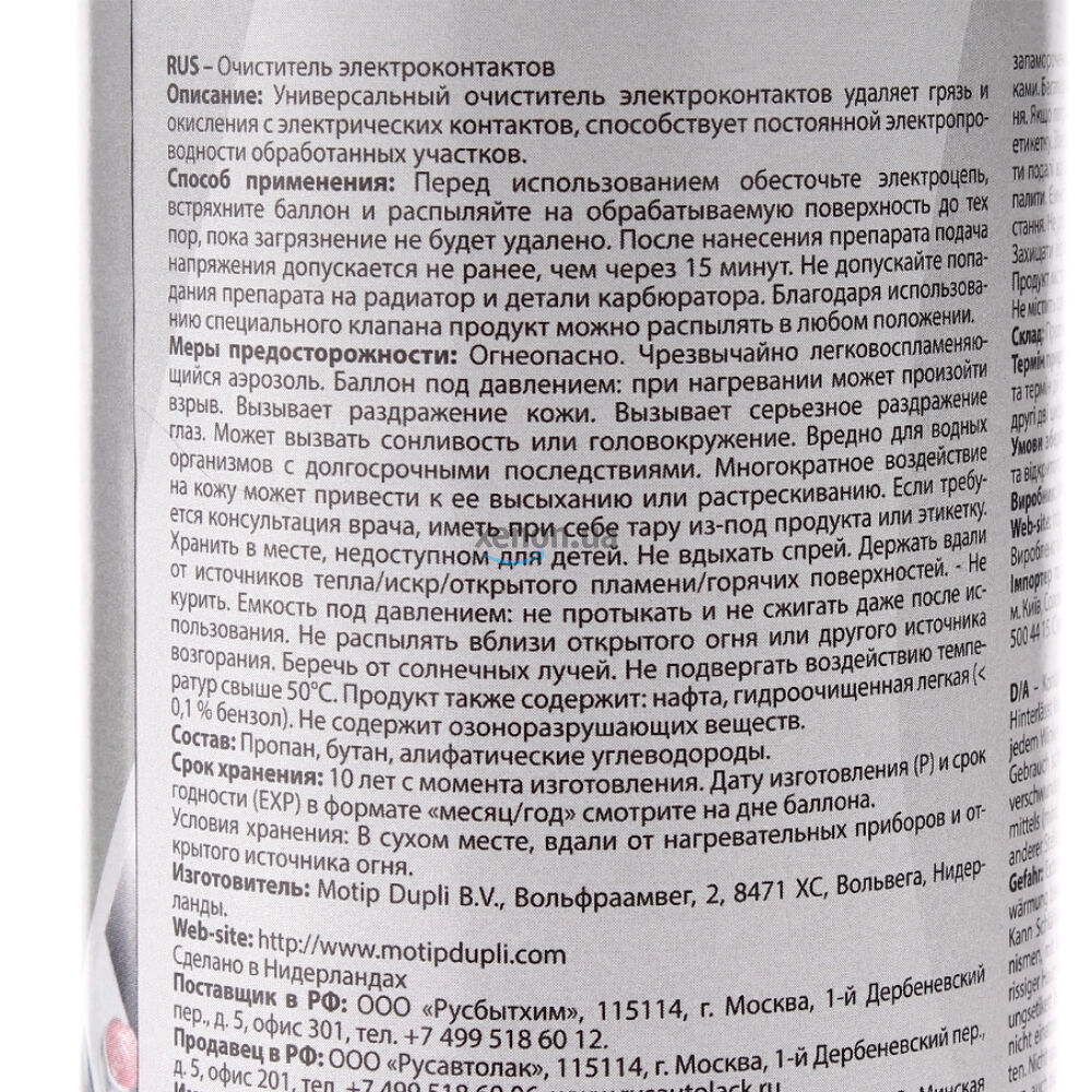 - Перед использованием обесточьте электроцепь, встряхните баллон и распыляйте средство на обрабатываемую поверхность до тех пор, пока загрязнение не будет удалено;