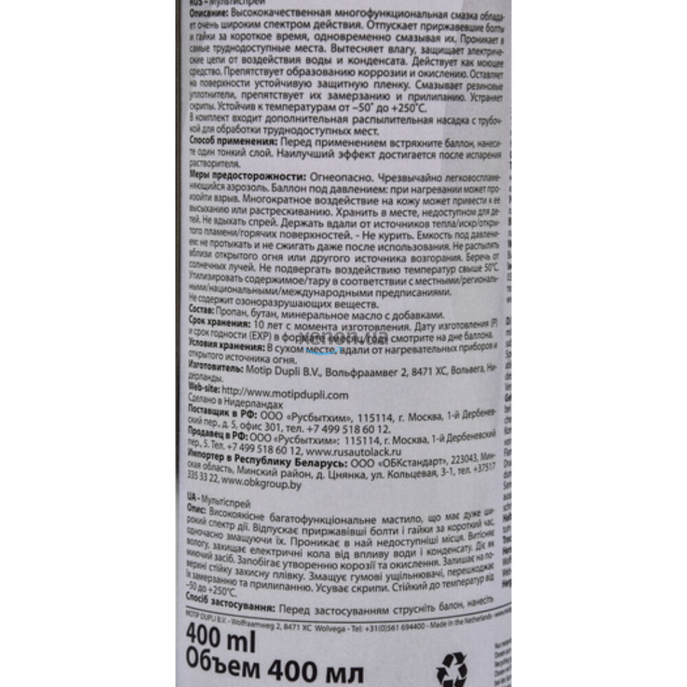 DETAILPRO/Автохимия/Смазки/Presto/Универсальная смазка/Мультиспрей Presto MD 100 400 мл