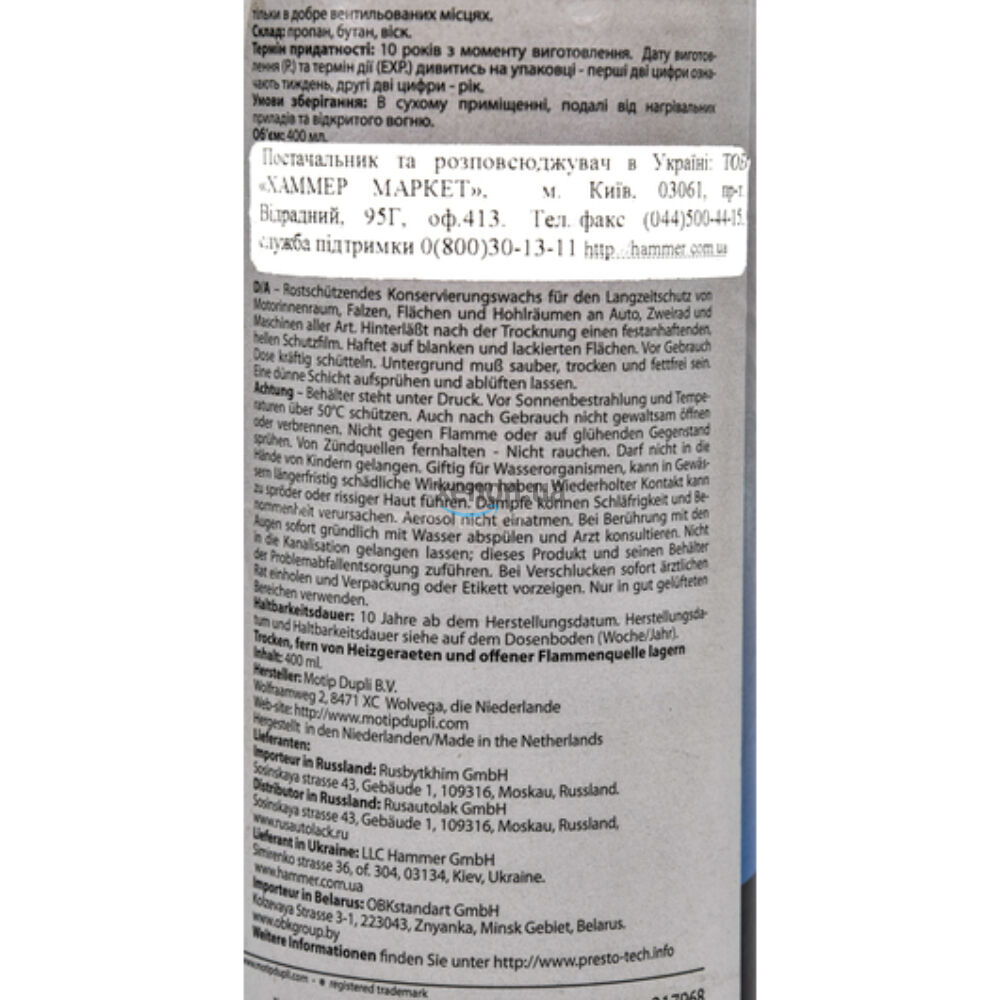 Presto Motorschutz Wachs смазка для защиты моторного отсека и трудно доступных участков авто- и мото- техники 400 мл