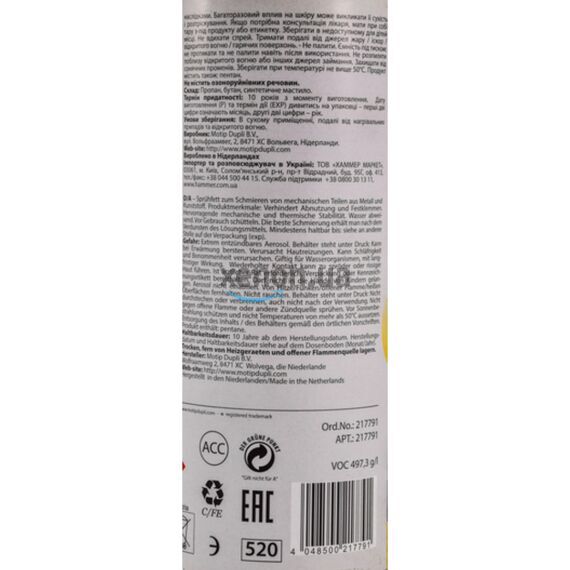 Смазка для механических соединений Presto Spruhfett Weiss 217791 400 мл - смазка с антикоррозийными свойствами для обработки механических соединений из металла и пластика. Предотвращает износ и заедание металлических поверхностей. Отличная устойчивость к механическим и термическим воздействиям. Водоотталкивающая. Рабочий диапазон температур — от –30°С до +180°С.