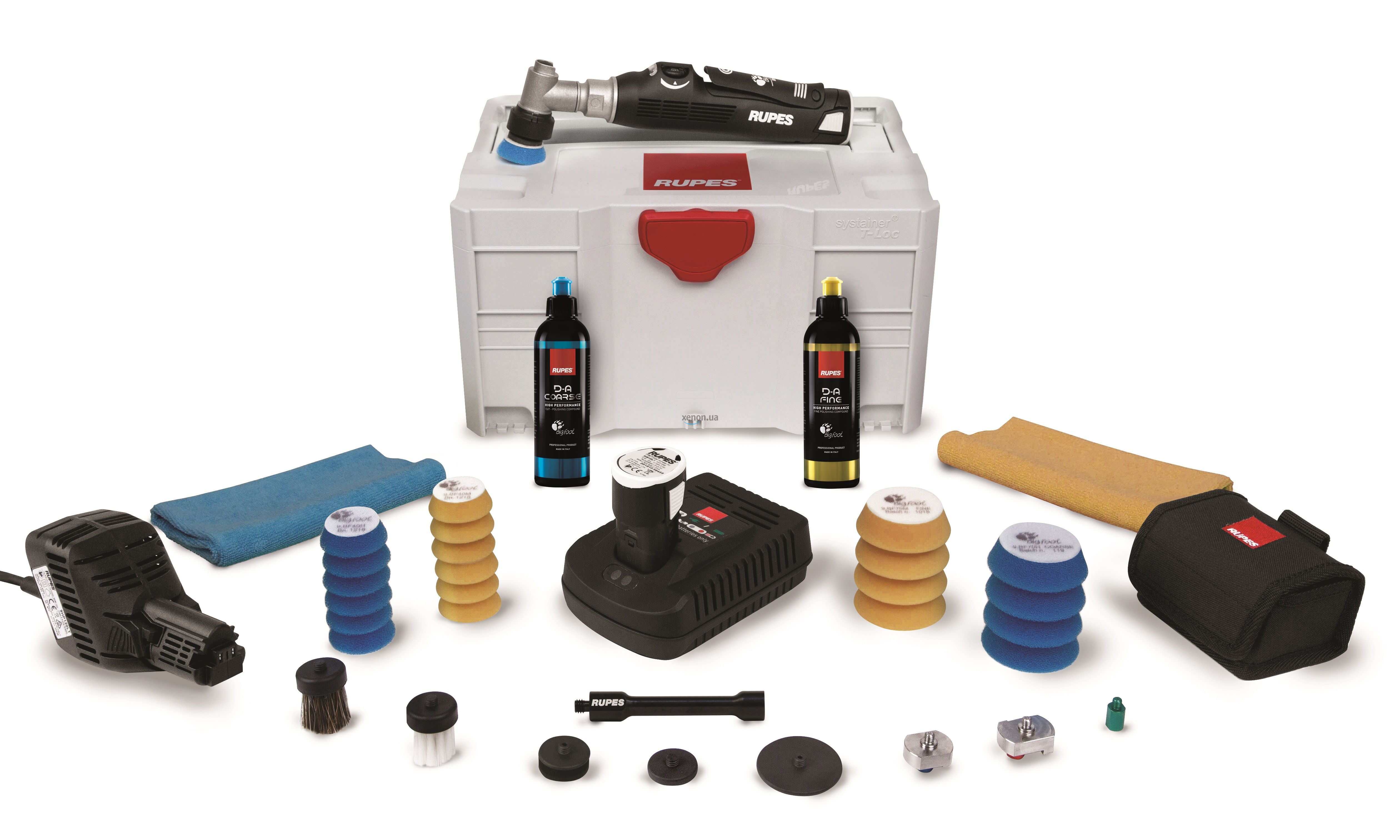 RUPES iBrid Nano — самое универсальное устройство на рынке. Может работать как от кабеля питания, так и от аккумуляторной батареи входящей в комплект. С помощью сменных насадок меняется принцип полировки, на выбор три типа вращения: эксцентрик 3 мм, эксцентрик 12 мм и ротор. Типы вращений можно совмещать с подошвами разного диаметра, на выбор 34 мм либо 50 мм. Кроме этого, в комплект входят щётки для очистки поверхностей: пластик, кожа, алькантара, ковролин.