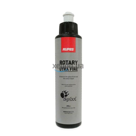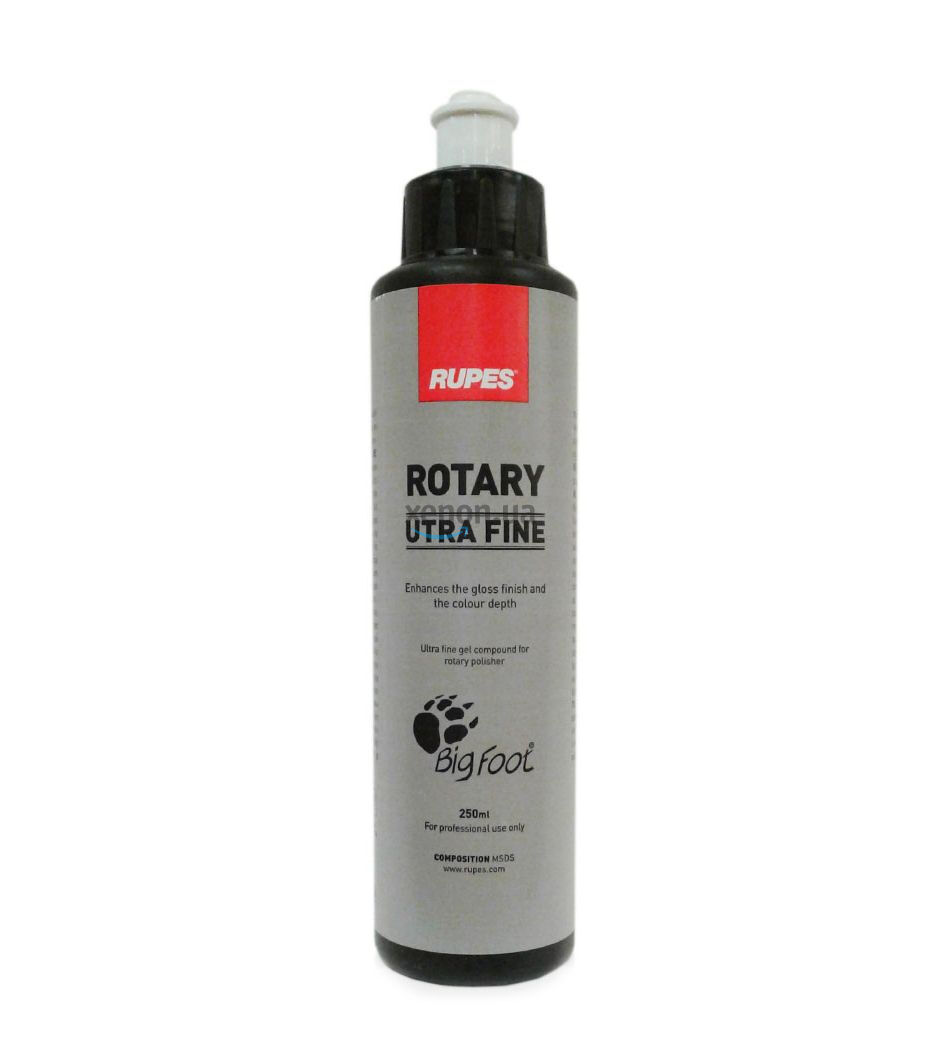 RUPES Rotary Ultra Fine — водорастворимая полировальная паста, предназначена для работы с роторным инструментом, например RUPES BigFoot LH19E. Используется как финишный шаг полировки. Придает глубокий глянцевый блеск обрабатываемой поверхности.