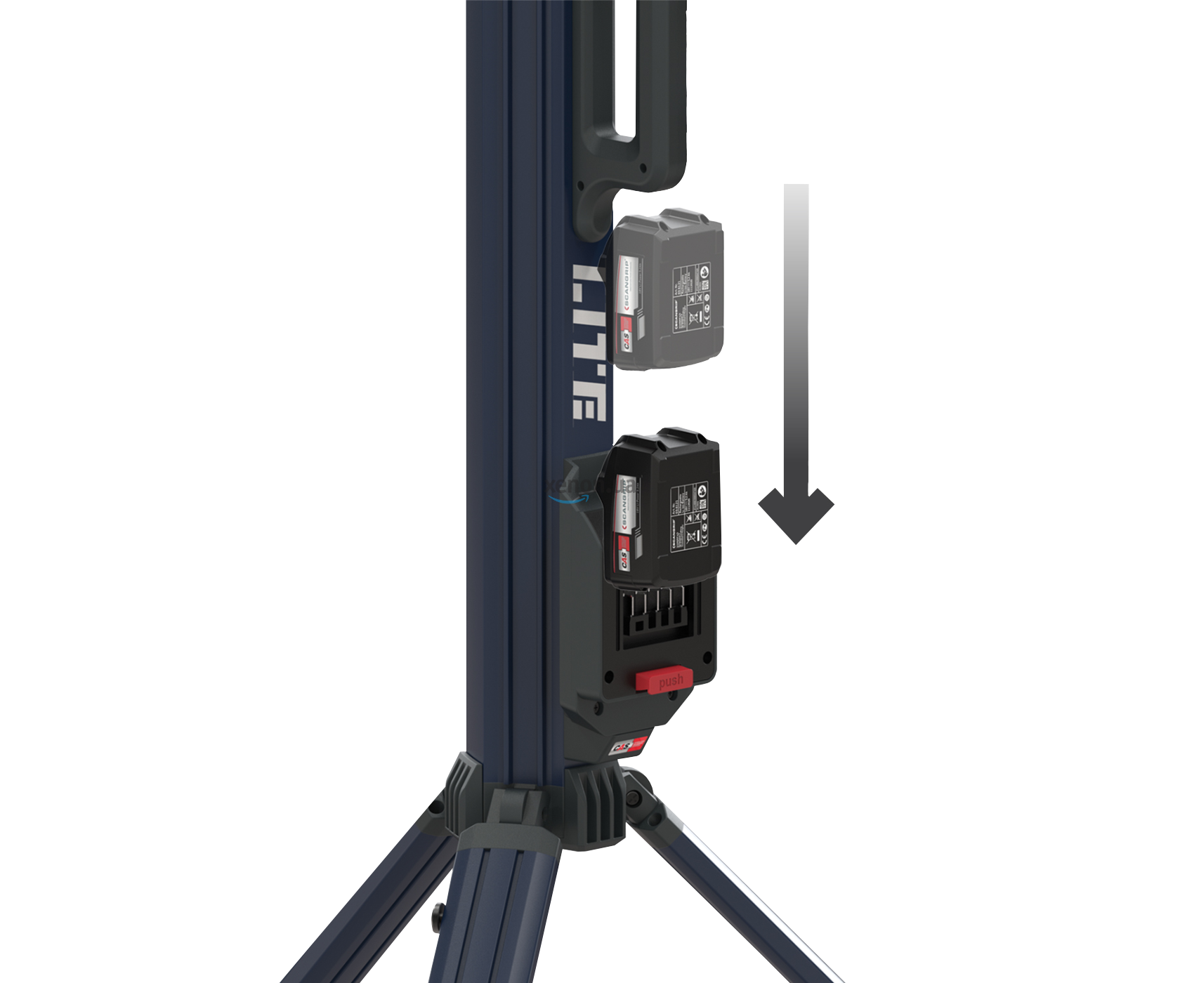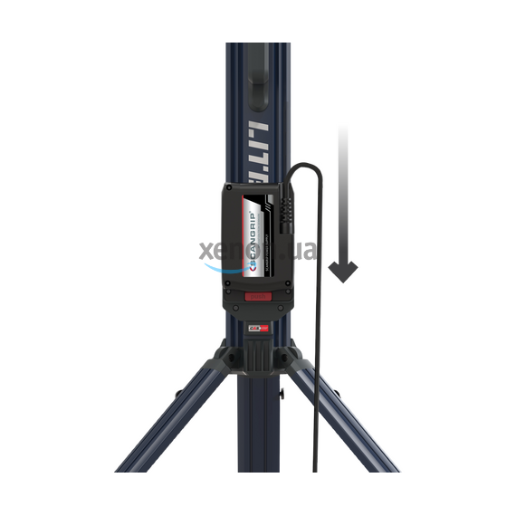 Штатив выдвигается до 2 метров и имеет фиксаторы на ножках, обеспечивая устойчивость и прочность конструкции. В сложенном состоянии он компактен, а наличие системы Quick-Fold позволяет сократить время установки штатива до нескольких секунд. Вся конструкция весит 5,2 кг и может легко транспортироваться одной рукой. Источником питания выступает аккумуляторная система Metabo/CAS 18 V, а в качестве сетевого блока питания возможно использование Scangrip Power Supply.