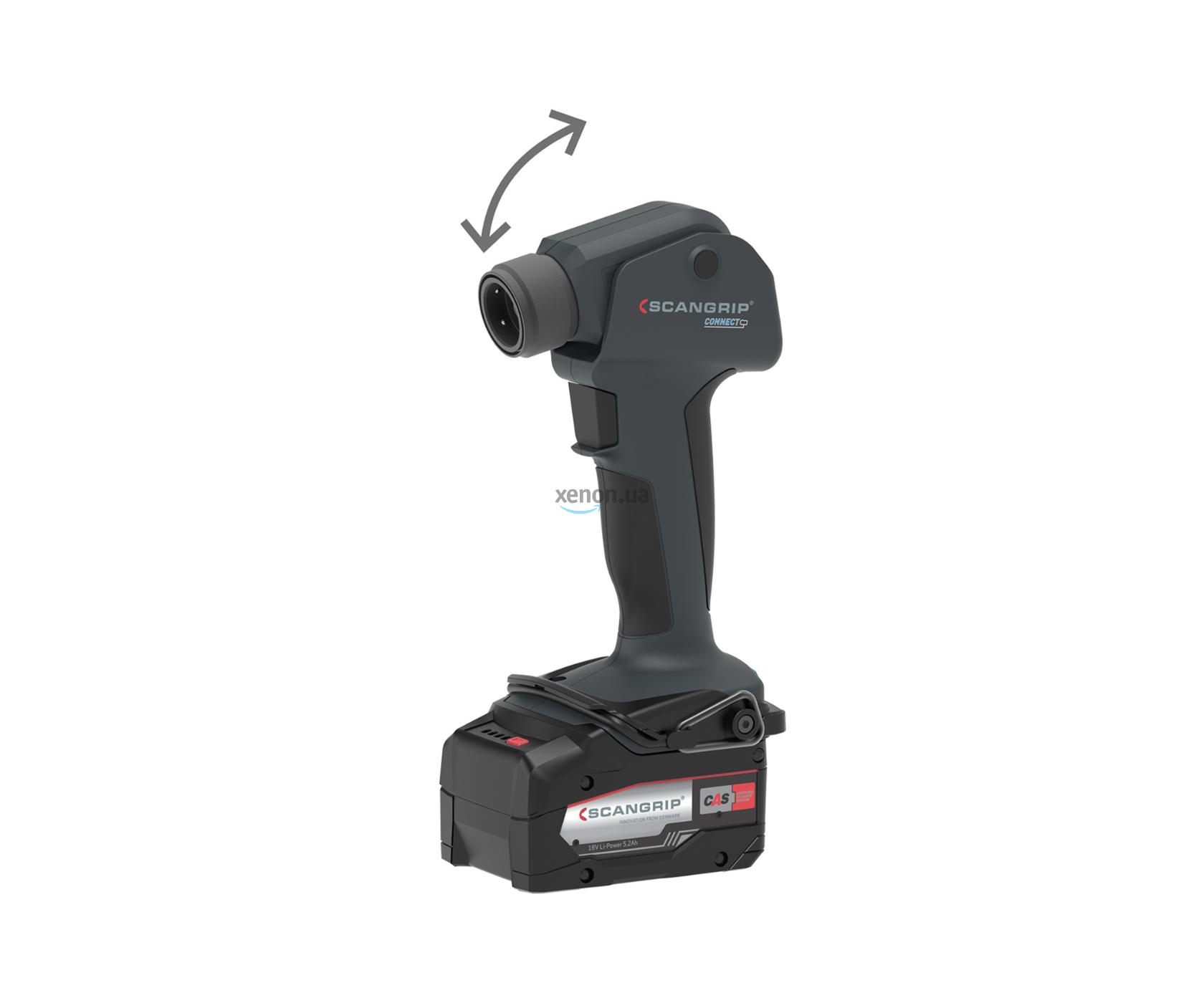 Коннектор рукоятки закреплён на шарнирной рамке и позволяет изменять угол осветительного элемента по вертикальной оси до 120°. Выбранную и подключенную головку дополнительно можно вращать как в вертикальной, так и в горизонтальной осях для установки точного направления светового потока, исходя из текущих задач.