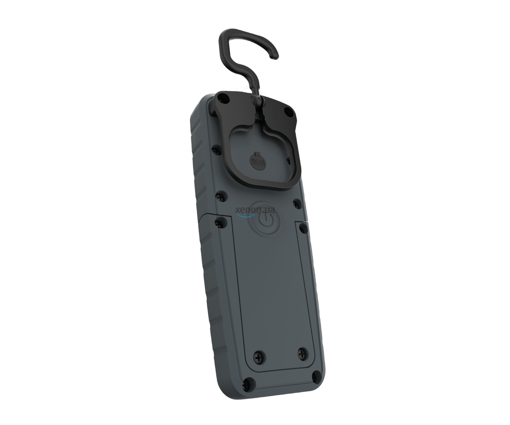 Фонарь изготовлен в прочном корпусе с защитой от пыли и влаги. На передней панели расположена устойчивая к воздействию растворителей стеклянная линза и индикатор заряда батареи. Верхняя часть фонаря поворачивается на угол до 180 градусов. В корпус встроен мощный магнит и прочный поворотный крюк, благодаря чему, фонарь можно разместить в нужном месте.
