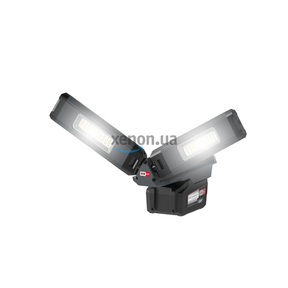 Источник света – 2 прожекторные LED-головки. При необходимости их можно снять со штатива, расположив на любой горизонтальной поверхности, или подвесить, используя встроенный металлический крючок. Каждая головка вращается независимо друг от друга по двум осям. Это позволяет создать идеальные условия освещения, исходя из текущих потребностей. Благодаря двухшаговой регулировке светового потока можно установить также и яркость.