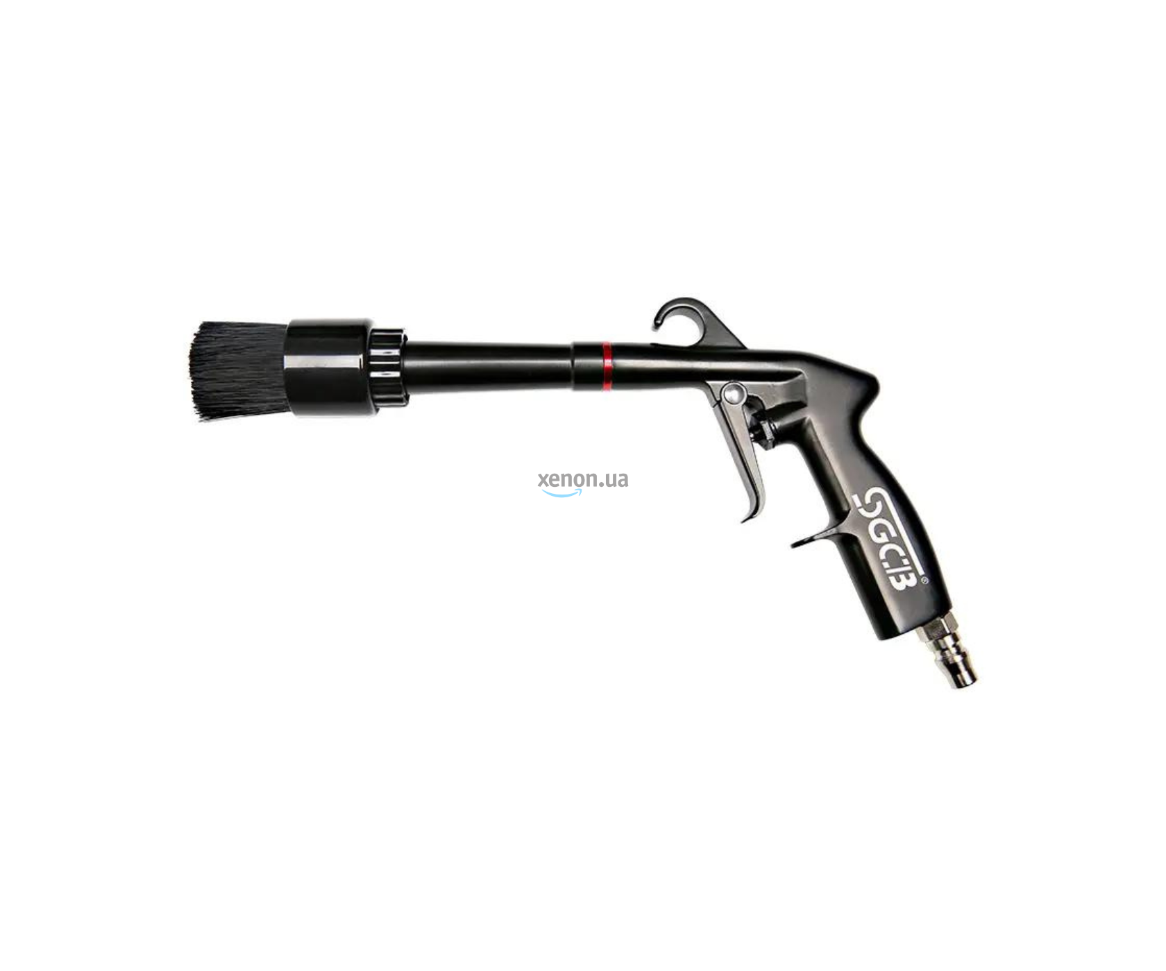 SGCB Interior Cleaning Gun – пистолет со щёткой с эффектом торнадо. Подсоединяется к воздушному компрессору и под высоким давлением создаёт завихрение (эффект торнадо), которое буквально выбивает пыль и грязь с поверхностей.