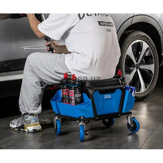 SGCB Rolling Mechanics Stool – модульный табурет на колёсах. Оснащён центральным выдвижным органайзером и боковыми корзинами для хранения автохимии и инструментов.