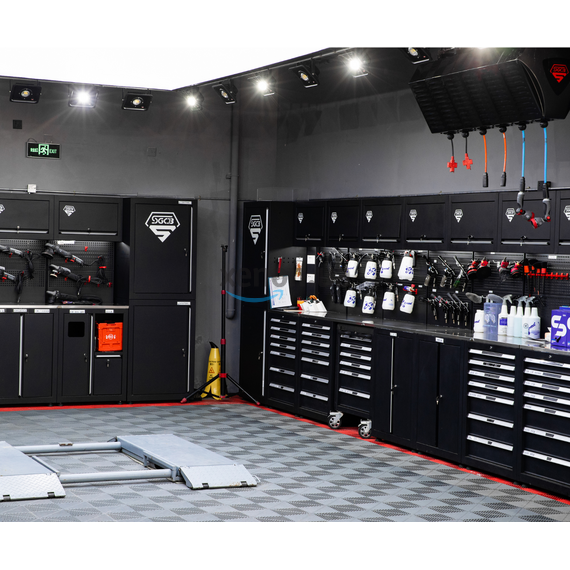 Tool Cabinet Combination For Car Workshop – модульный комплект металлической мебели для мастерской, гаража, студии детейлинга и т.д. Брутальный, практичный и надёжный. Предназначен для эксплуатации в самых суровых условиях. Все модули можно перегруппировать, исходя из размеров помещения или производственной необходимости для максимального повышения эргономики рабочего места.