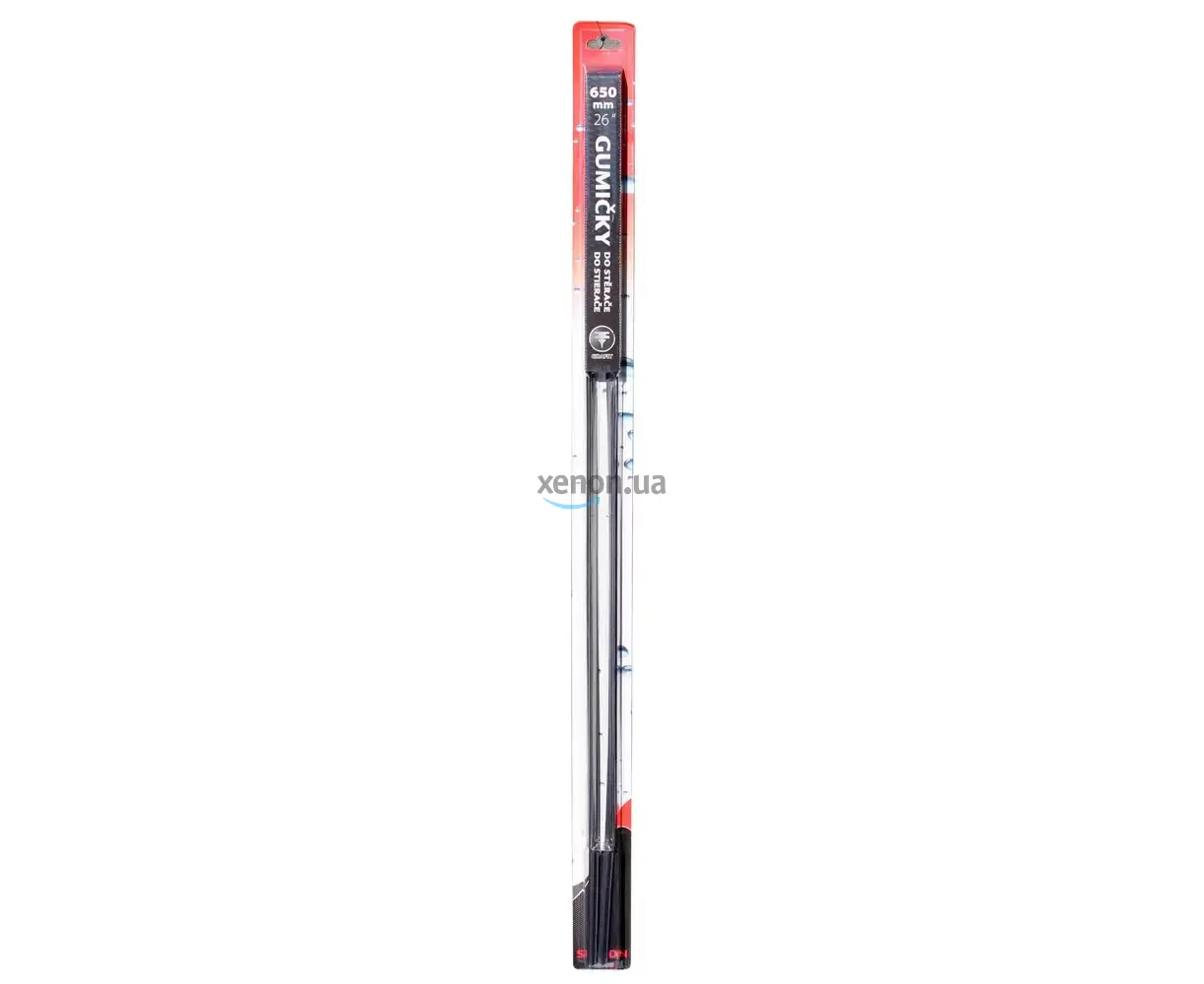 Эффективность работы щеток стеклоочистителя в основном зависит от состояния их резинок. Резиновый элемент дворников повреждается в первую очередь. Работа стеклоочистителей «всухую», загрязненное или поврежденное стекло способствуют их ускоренному износу и выходу из строя. Резинки щеток стеклоочистителя лучше сохраняют свои качества при регулярной работе дворников.Резинки дворников – одна из неотъемлемых деталей машины. Они поддерживают лобовое и заднее стекло в чистоте и используется достаточно часто, как для улучшения видимости в дождь, так и для чистки стекла от загрязнений.• Длина - 650 мм• В комплекте 2 шт