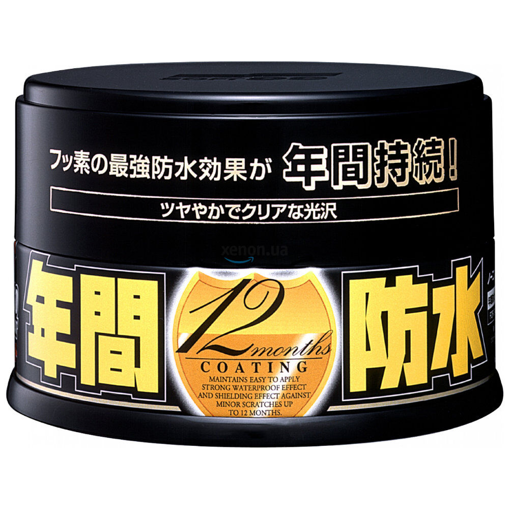 Долговременный воск для темных автомобилей SOFT99 Fusso Coat 12 Months Protection Black 200 г 00300 — фторуглеродное полимерное покрытие, имеющее сверхсильную защитную способность эффективно предохранять поверхность автомобиля от дождя, грязи и других нежелательных элементов (мошка, птичье гуано, гудрон, древесная смола). Его сверхстойкое покрытие создает мощный гидрофобный эффект, который отталкивая воду, позволяет поверхности автомобиля оставаться максимально чистой при самых худших погодных и климатических условиях. Количество нанесений - 25.