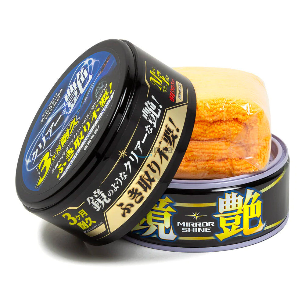 Воск «зеркальный блеск» для темных автомобилей SOFT99 Fusso Coat Mirror Shine for Dark 200 г 00374 — защитный полусинтетический воск нового типа, который многократно сокращает время на обработку автомобиля. Теперь не надо наносить, ждать и располировывать, все эти действия сведены в одно. Количество нанесений - 25.