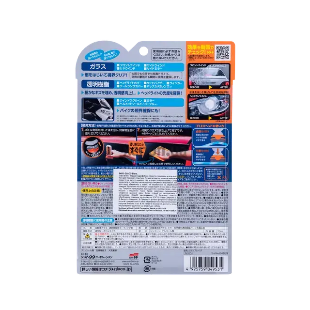 - Тщательно очистите обрабатываемую поверхность с помощью SOFT99 Glass Compound Z;