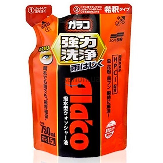 Омывающая жидкость для стекол SOFT99 Glaco Powerful Washer Liquid 750 мл 04952 - омыватель для стекол с гидрофобным эффектом.