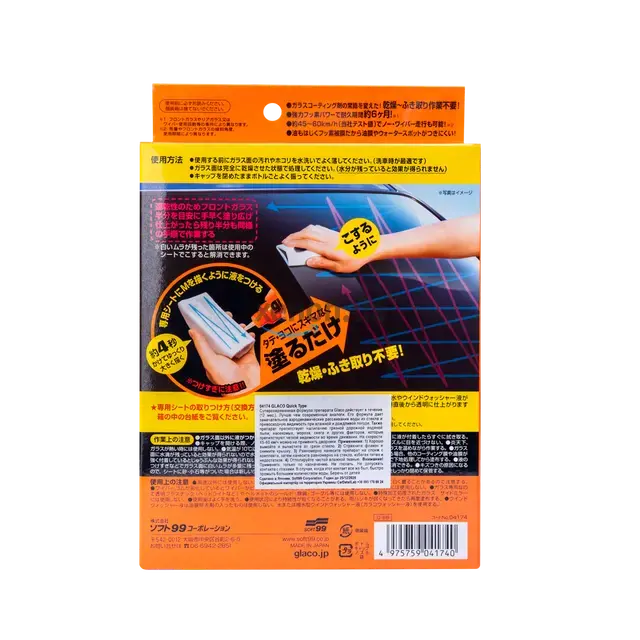 Антидождь для стёкол быстрого нанесения SOFT99 GLACO Quick Type 50 мл 04174. Glaco Quick Type — очень прост в применении, так как зачастую, не требует предварительной очистки и подготовки стекла перед нанесением. Аппликатор с вискозным покрытием обеспечивает быстрое и легкое нанесение. Не требует дополнительной располировки. Количество нанесений - 10 лобовых стекол.