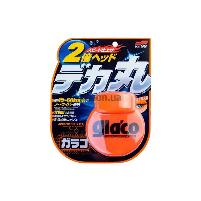 Антидождь для стёкол SOFT99 GLACO Roll on Large 120 мл 04107 придаёт сильные водоотталкивающие свойства, при которых вода, собираясь в капли, не задерживается на обработанной поверхности. Встречный поток воздуха сбрасывает капли со стекла уже на 45 км\ч. Покрытие препятствует отложениям в виде грязи, смога, мошки и птичьего гуано. Также эффективно препятствует образованию ледяной корки. Количество нанесений - 25 лобовых стекол.