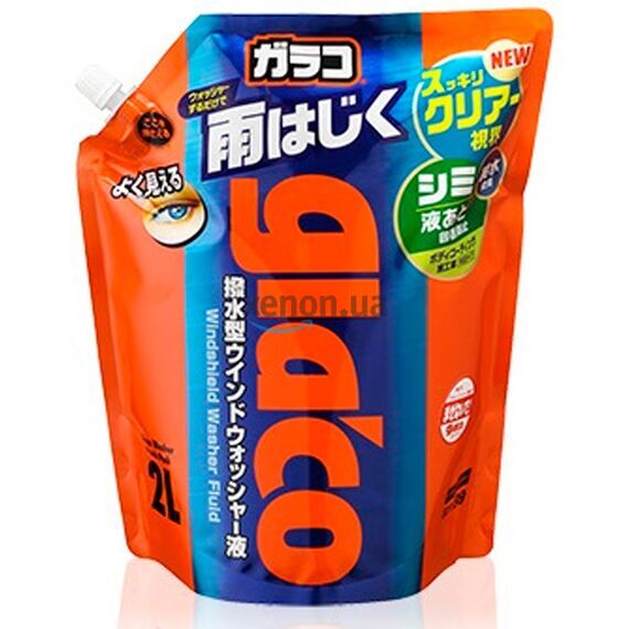 Омывающая жидкость для стекол SOFT99 Glaco Washer Pouch Pack 2L 2 л 04121 - очищение и защита стекол — 2 в 1. Glaco Washer Pouch выполняет роль омывателя. Но помимо очистки стекла от легких загрязнений, средство улучшает видимость и гидрофобные свойства ранее нанесенных антидождей линейки Glaco.