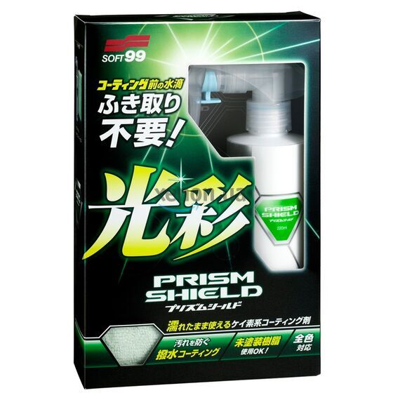 Защитный агент быстрого нанесения SOFT99 Prism Shield 220 мл 00389. Состав придает поверхности блеск и гидрофобные свойства, а также облегчает мойку автомобиля. Особенность этого состава в универсальности и простоте нанесения. Состав можно наносить как на сухой, так и на мокрый автомобиль, а также на пластик и резину. При нанесении на сухую поверхность эффект состава проявляется сильнее и дольше.