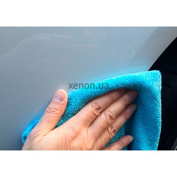 - Нанесите небольшое количество очистителя на идущее в комплекте микрофибровое полотенце;