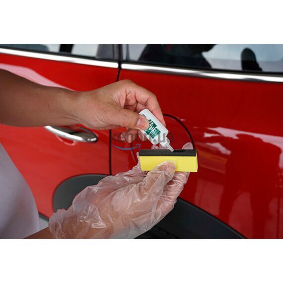- Нанесите состав на черную сторону губки и равномерно распределите по обрабатываемой поверхности.