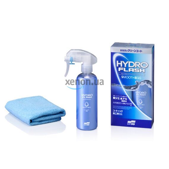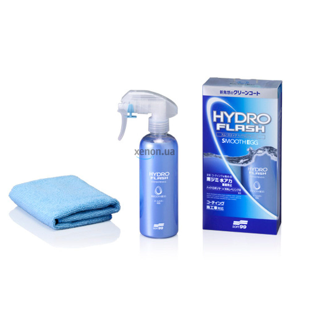Полимерный спрей с гидрофильным эффектом SOFT99 Smooth Egg Hydro Flash 230 мл 00521 — это новая разработка на основе гидрополимеров, которая создает водоотталкивающий слой с гидрофильным сходом воды, отшелушевающим эффектом для грязи и кристальным блеском. В отличие от гидрофобных средств, вода не собирается в капли и при высыхании не оставляет следов водного камня. Средство подходит не только для лакокрасочного покрытия, но и для стекол, колес, пластика, светотехники и хрома, а также для автомобилей, покрытых защитными составами.