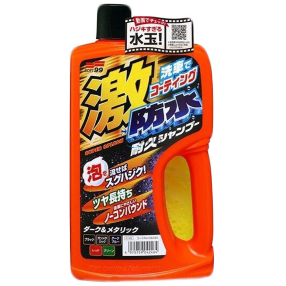 Шампунь с водоотталкивающим эффектом для темных автомобилей SOFT99 Water Block Shampoo Black & Dark 04246 750 мл. Этот недавно разработанный шампунь мягко очищает автомобиль при помощи обильной плотной пены. После использования на кузове остается прочная восковая пленка, которая ускоряет сход воды и предотвращает налипание грязи.