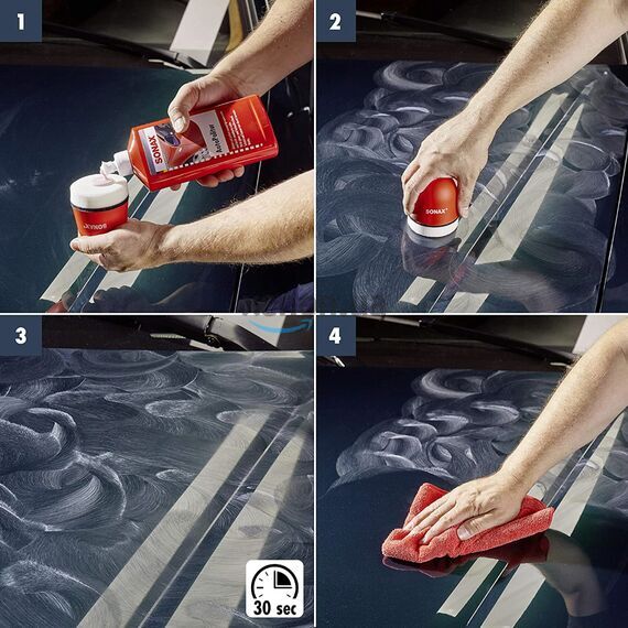 - Наконец, удалите остатки полироли снаружи салфеткой из микрофибры SONAX .