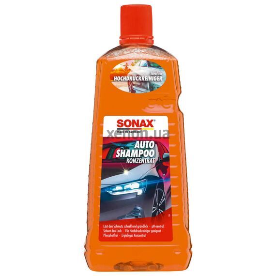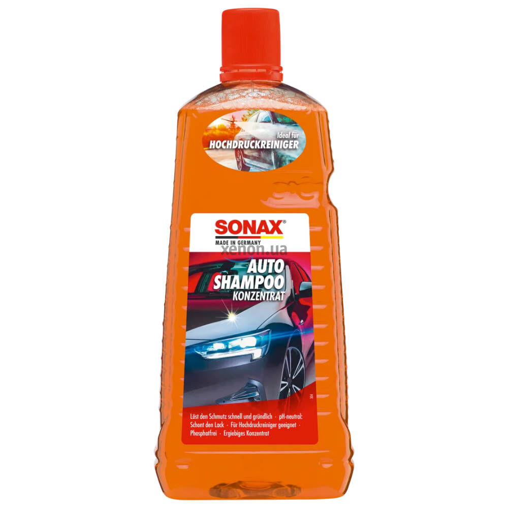 Недорогой автошампунь концентрат SONAX AutoShampoo Konzentrat 314541 в большой упаковке 2л быстро и тщательно удаляет загрязнения со всех лакокрасочных, резиновых, пластиковых, виниловых и стеклянных поверхностей. Формула с нейтральным pH защищает лакокрасочное покрытие и не разрушает существующий защитный восковой слой. Также подходит для использования в очистителях высокого давления. Без фосфатов.