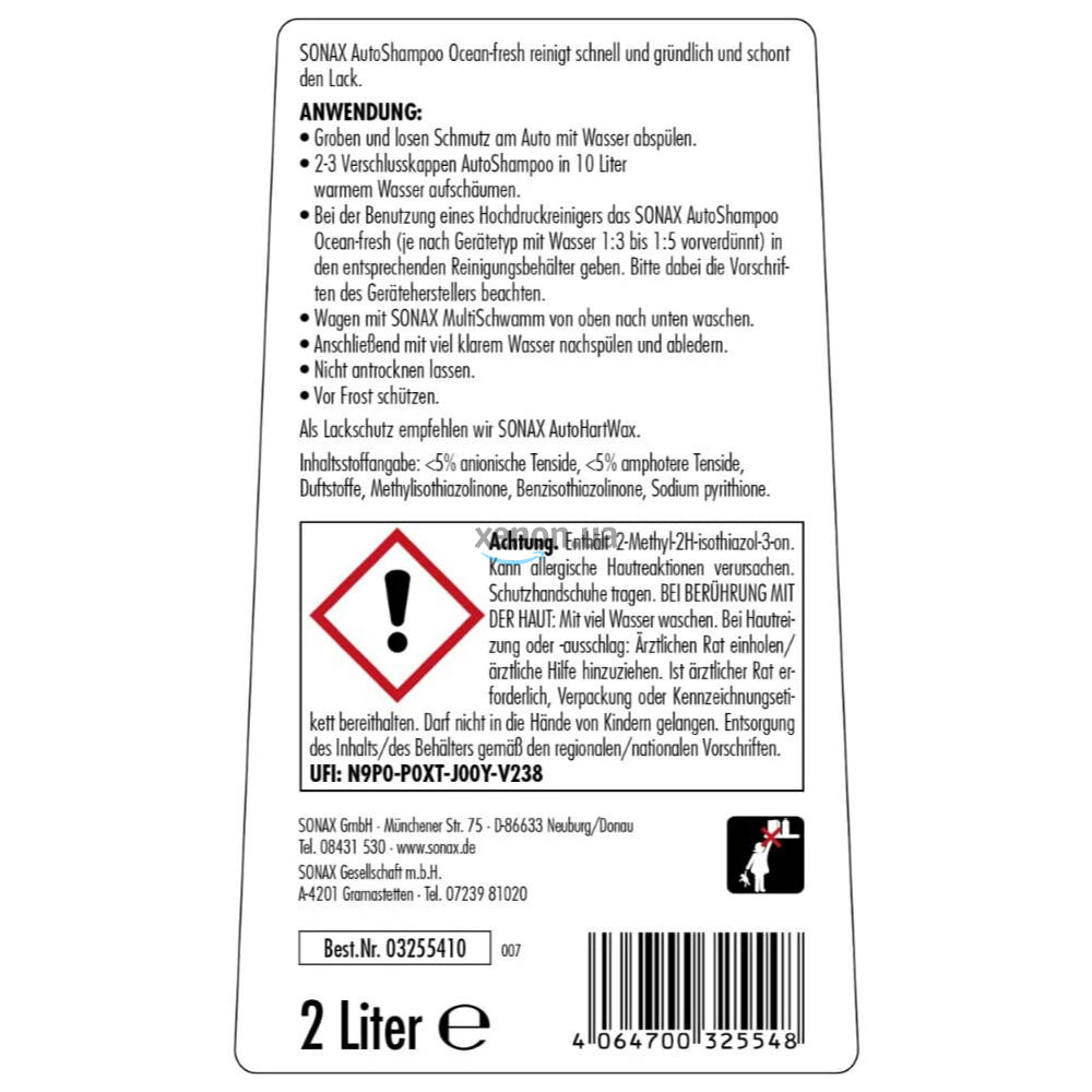 Инструкция по использованию SONAX Auto Shampoo Ocean Fresh 325 541