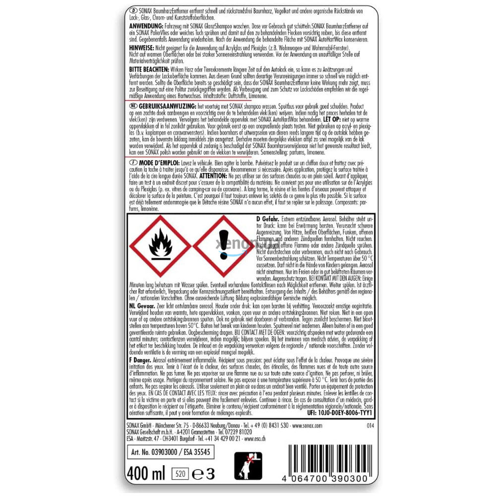 SONAX Baumharz Entferner очиститель древесной смолы и органических пятен 400 мл