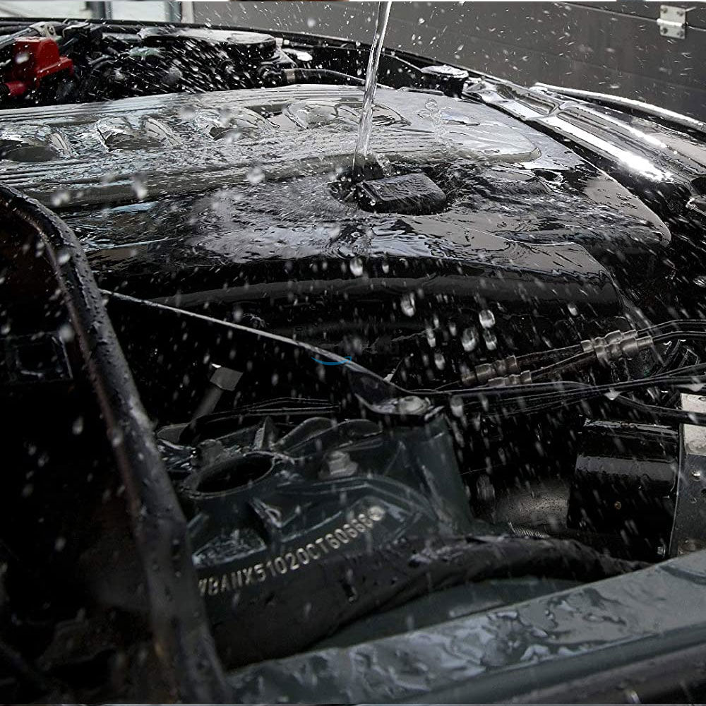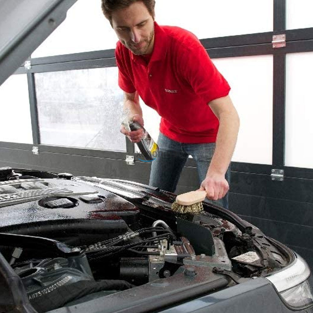 - Очиститель двигателя должен попасть на все грязные участки под капотом.