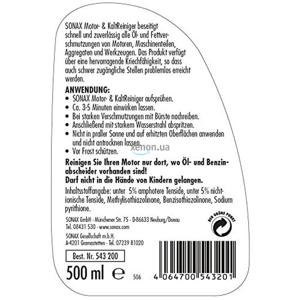 SONAX Motor +Kalt Reiniger наружный очиститель двигателя 500 мл