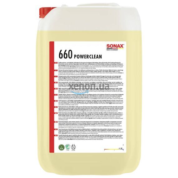 Сильнощелочной, высокоэффективный чистящий концентрат SONAX PowerClean 660705 для мощной предварительной очистки в автомойках и автомойках самообслуживания. Не содержит NTA и фосфатов, быстро и легко отделяется. Также подходит в качестве бескислотного очистителя колесных дисков, для мытья щеток и грузовых автомобилей. рН 13,5.