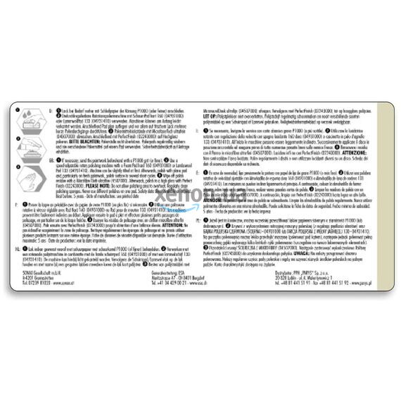 - После предварительной полировки с помощью SONAX PROFILINE CutMax 06-04 246141 закончите финишной полиролью SONAX PROFILINE Perfect Finish 04-06 224141 и зелёным полировальным кругом средней жёсткости SONAX 493000;
