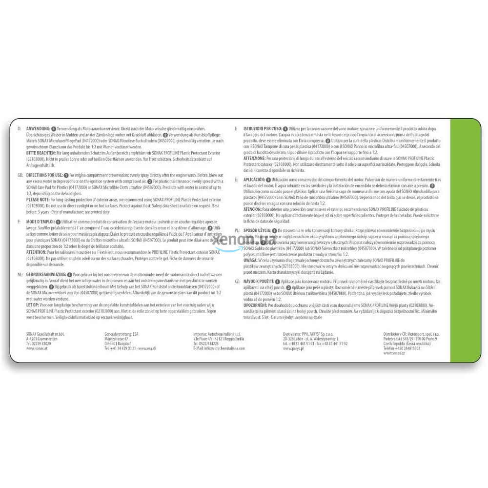 Инструкция: очиститель пластика SONAX 205 405