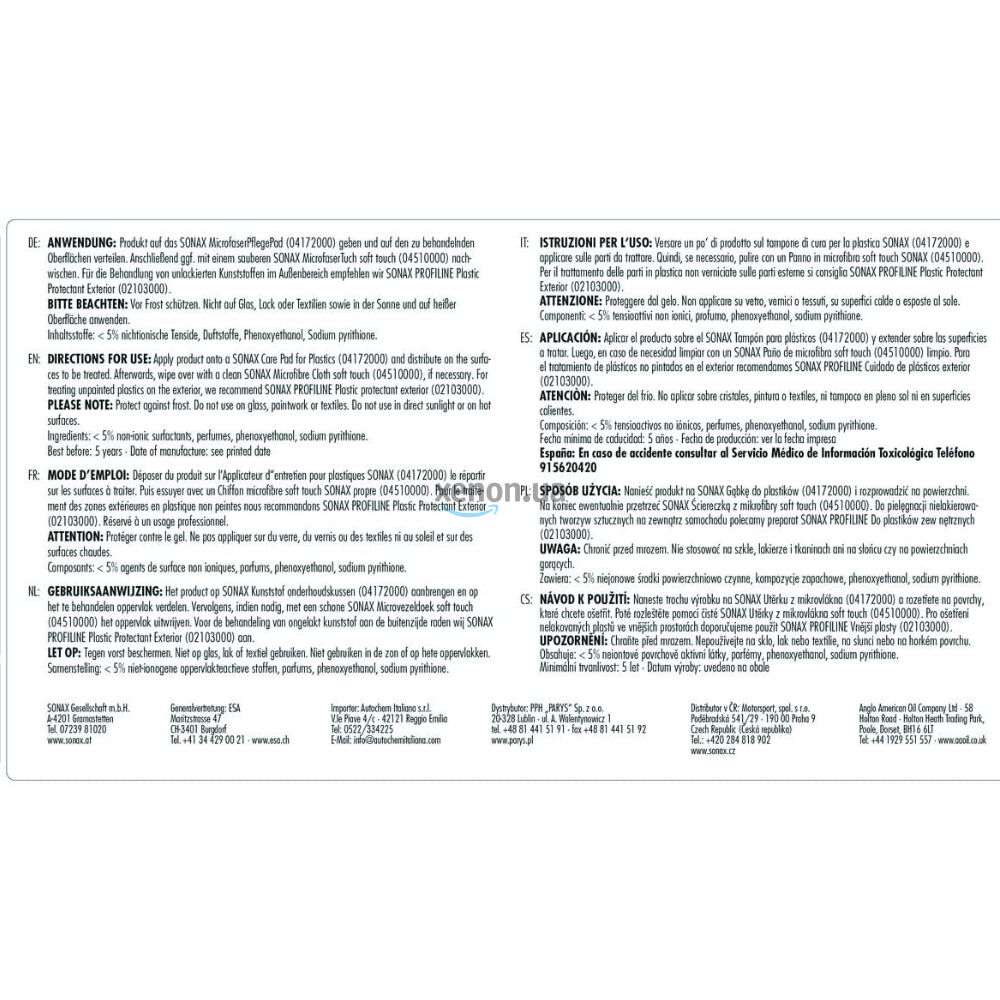 - Мы рекомендуем SONAX PROFILINE Plastic Protector