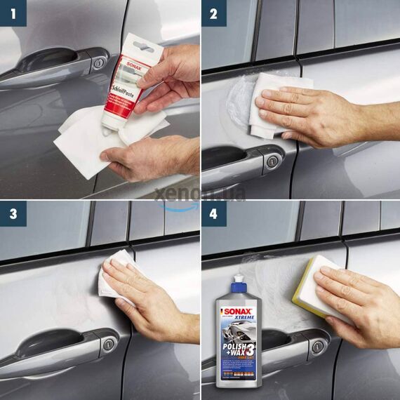 - Взять новую, чистую салфетку для полироваки и дополнительно обработать финишной полиролью SONAX Lackreiniger (302200).