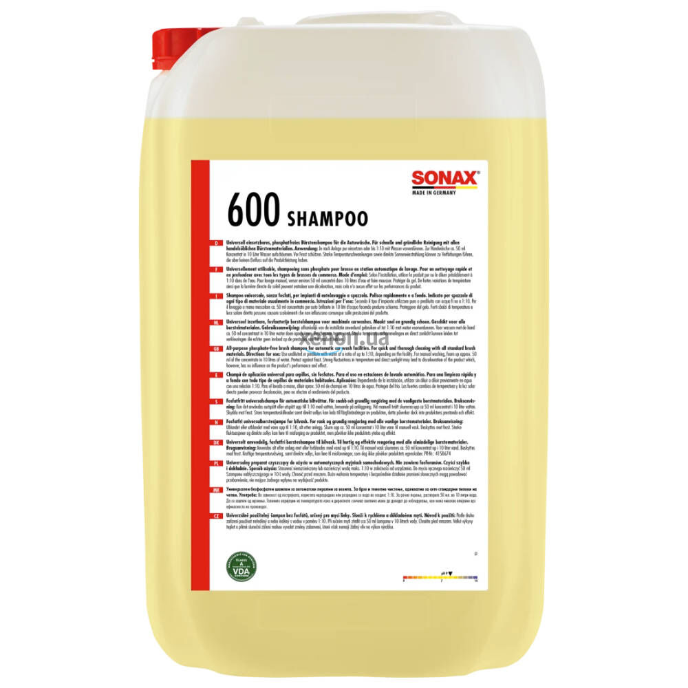 Концентрированный шампунь для щеток с повышенным пенообразованием и высокой очищающей способностью SONAX Shampoo 600705. Защищает моющийся материал, будь то вспененный, текстильный или другой. С добавками, смягчающими воду, для еще большей моющей способности. Неионогенные и амфотерные. без фосфатов. рН 9.