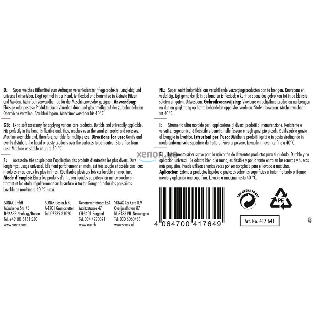SONAX Sponge Applicator Super Soft супермягкая губка-аппликатор 6 шт