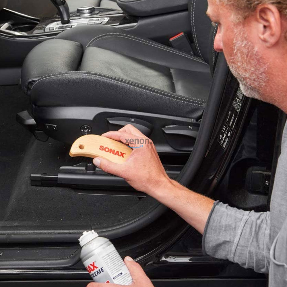 Универсальная щетка SONAX Textile+Leather Brush - профессиональный инструмент для комплексного ухода за салоном автомобиля. Специальная конструкция позволяет эффективно очищать как текстильные поверхности, так и гладкую кожу без риска повреждения материалов.