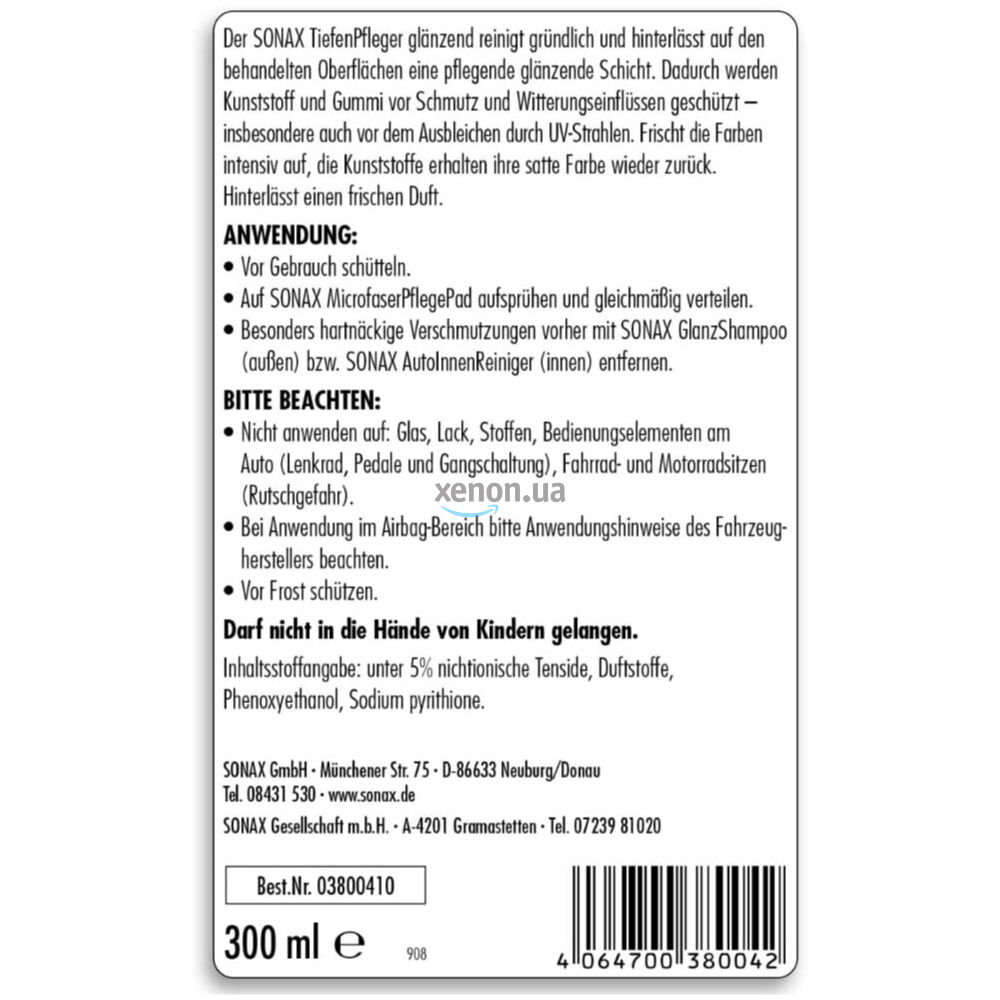 SONAX TiefenPfleger Glanzed полироль для пластика и резины с глянцевым эффектом 300 мл