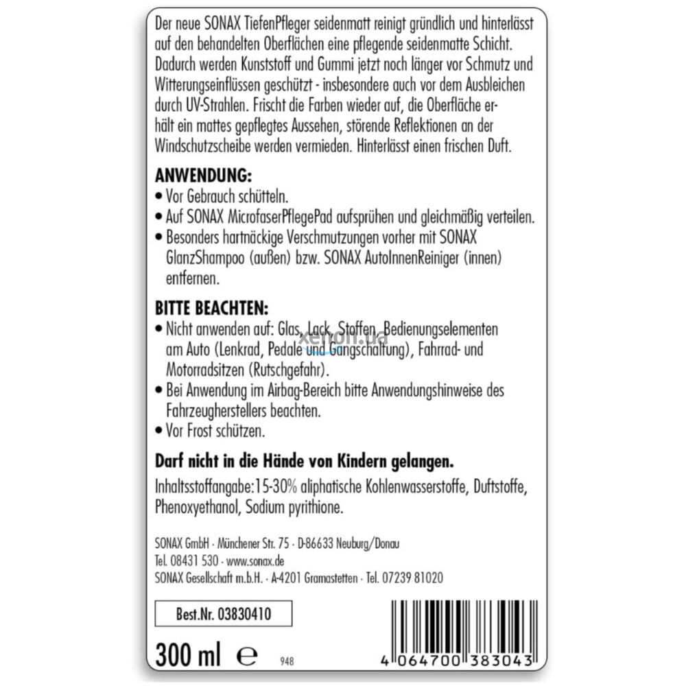 SONAX TiefenPfleger Seidenmatt полироль для пластика и резины с матовым эффектом 300 мл
