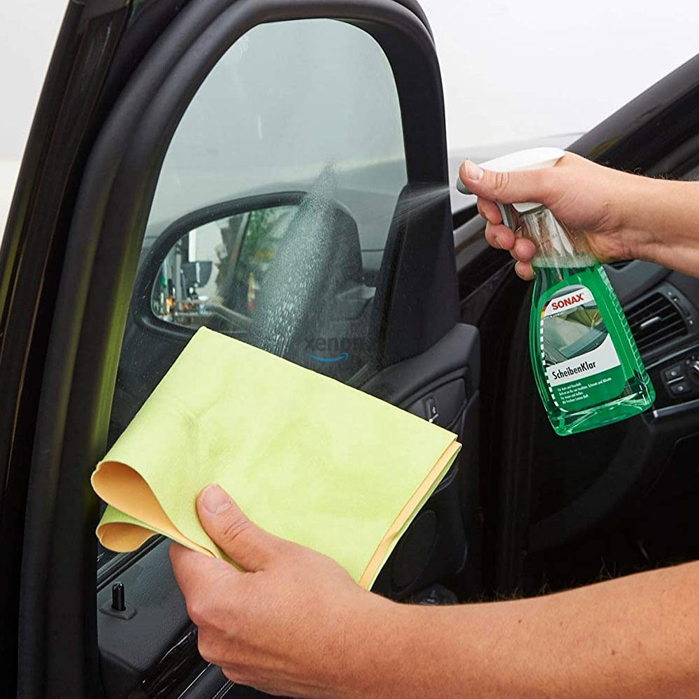 Двухслойная ткань Сонакс 416 700 для тщательной очистки стекол без разводов. Зеленая сторона из микроволокна: удаляет даже стойкие загрязнения, такие как жировые и масляные пленки. Идеально для использования в сочетании с Интенсивным очистителем стекол SONAX Xtreme NanoPro Scheiben Klar. Желтая сторона из синтетической замши: приятная мягкость, износостойкость и впитывающая способность для витирания насухо после очистки.