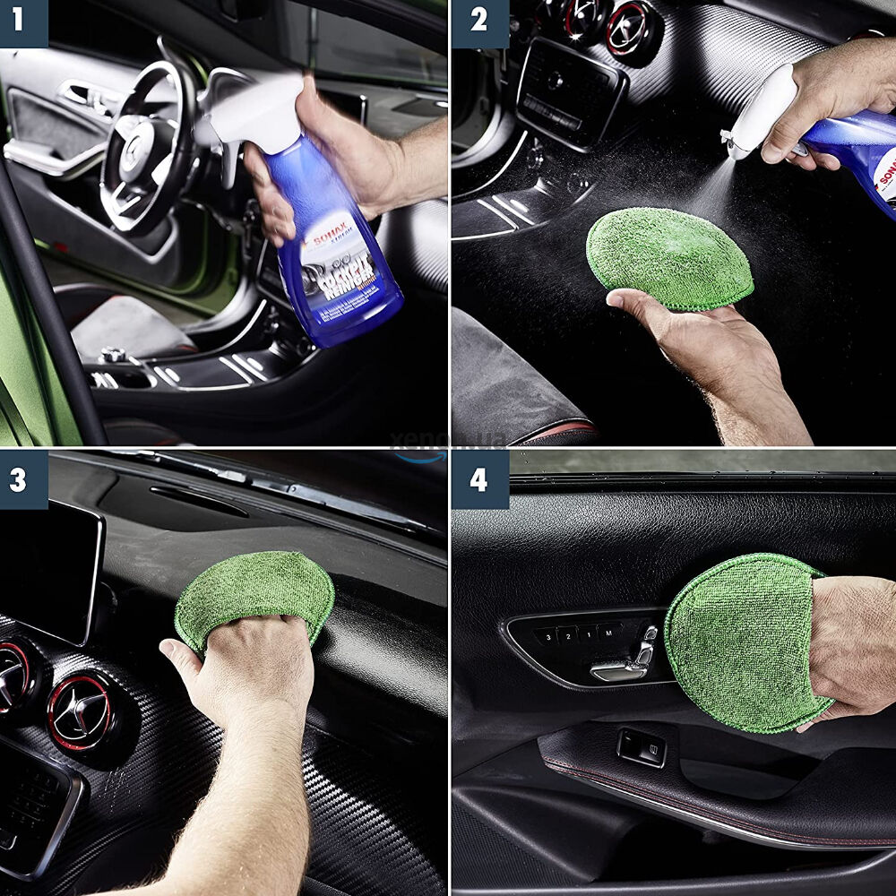 - Нанести средство на салфетку из микрофибры или распылить на обрабатываемую деталь;