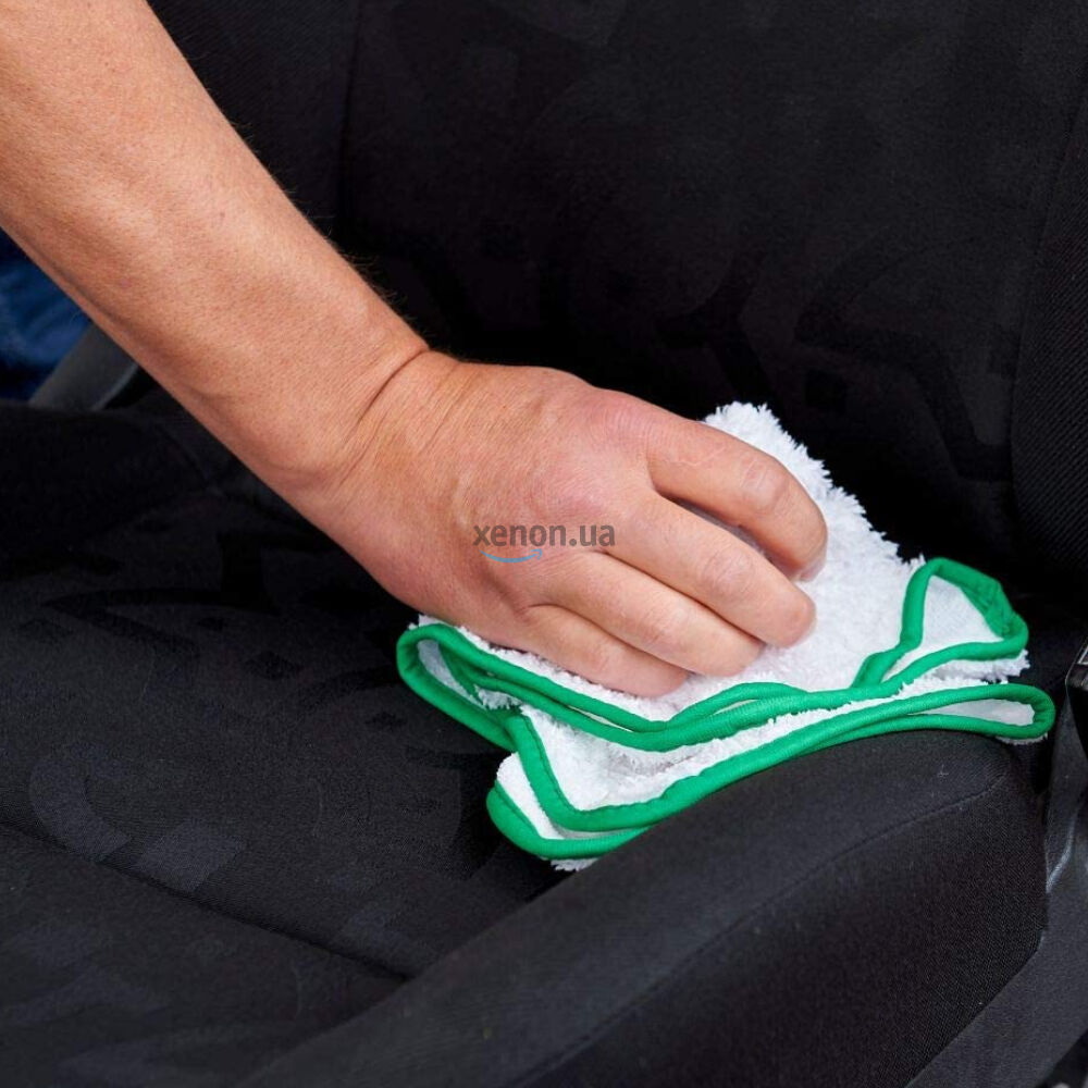 - Соберите рыхлую грязь чистой и влажной микрофиброй и промойте её чистой водой. Повторяйте процесс, пока грязь не перестанет быть видимой на ткани.