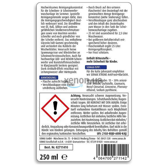 Инструкция: летний концентрат омывателя SONAX XTREME 271 141